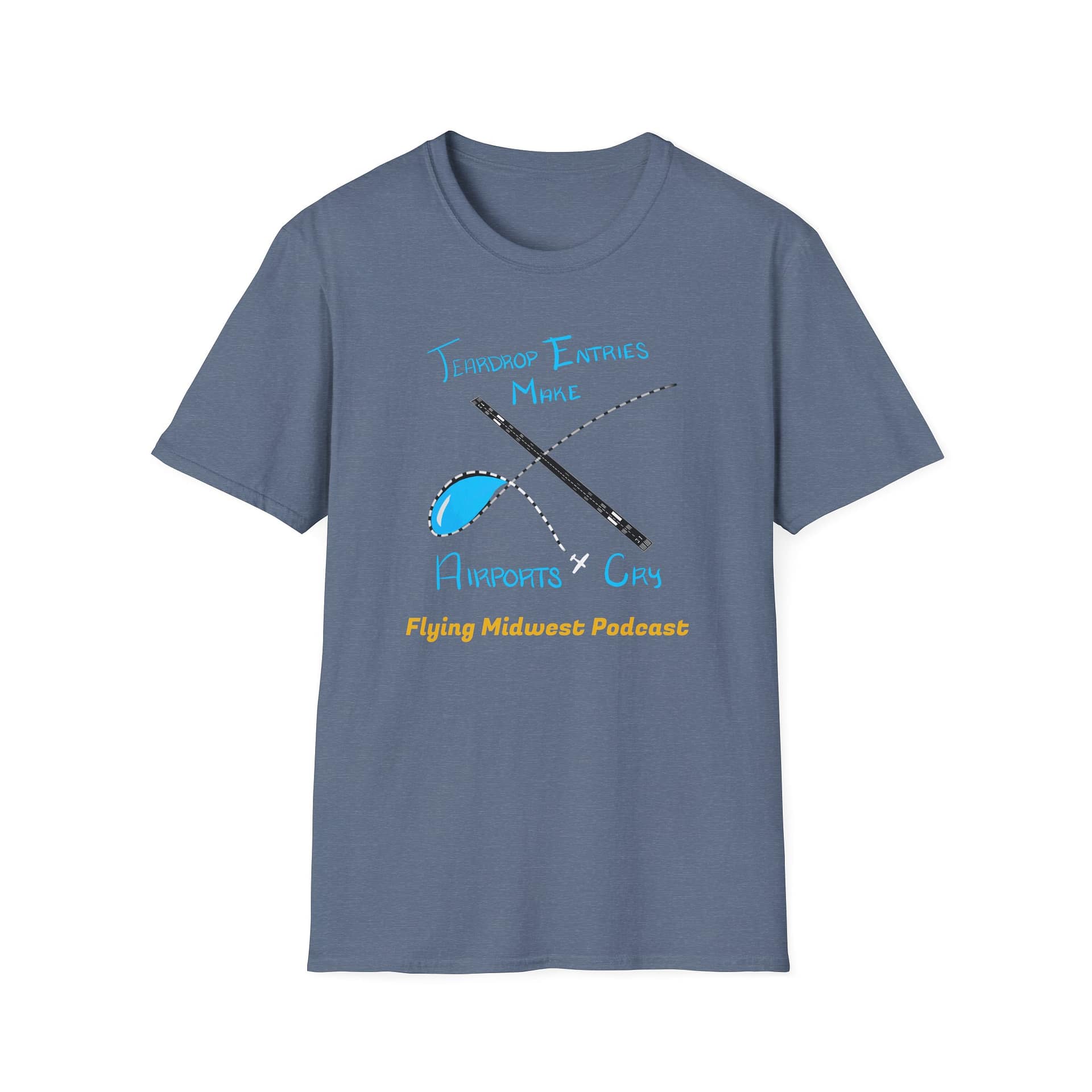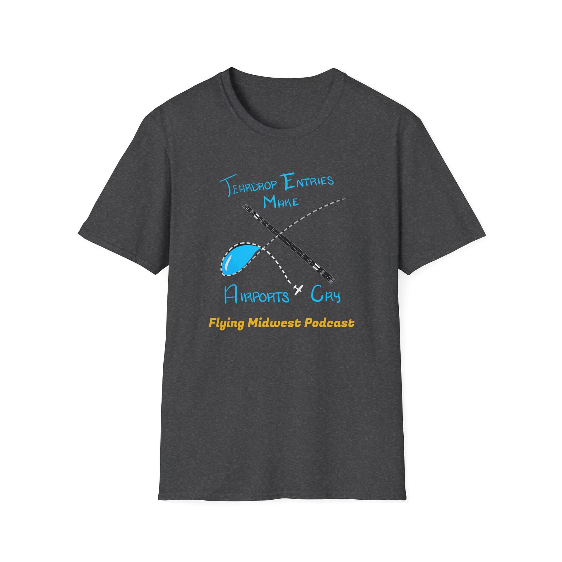 Want to spark some conversation and rep your favorite aviation podcast, then this shirt is for you! The Tear Drop Entries Make Airports Cry shirt is a great addition to the Flying Midwest line. The graphics were hand drawn by our very own Madi!
